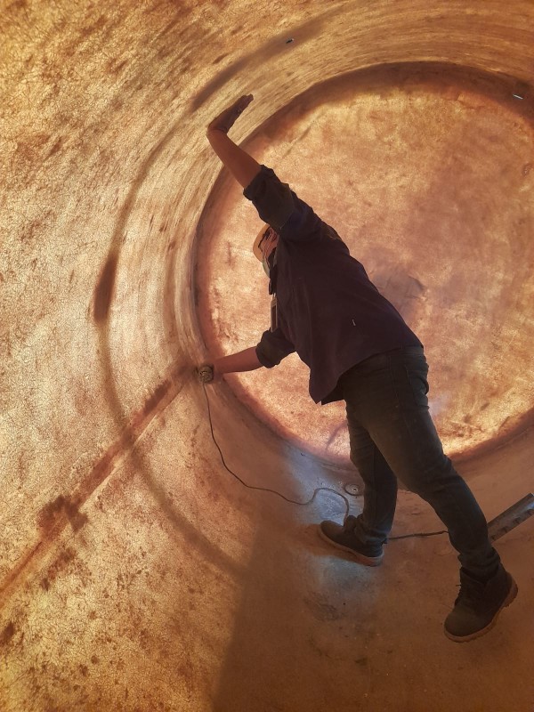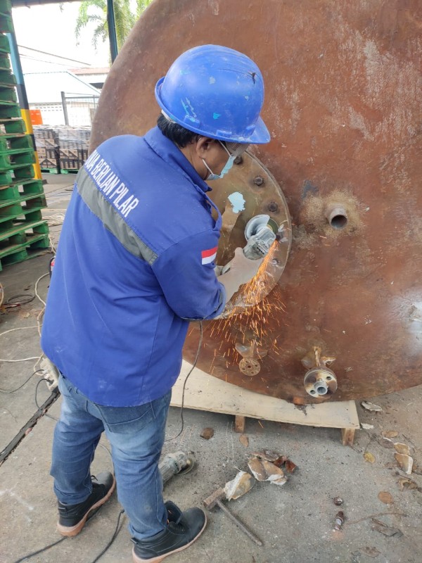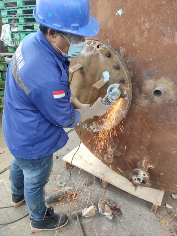Blasting permukaan internal hingga mencapai profil permukaan yang siap untuk pelapisan.