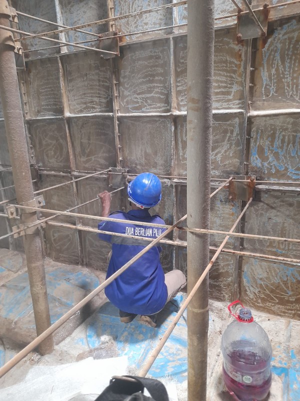 - Pelapisan ulang tangki: Menggunakan FRP Polyester dengan ketebalan 300 micron, yang terkenal karena daya tahannya terhadap bahan kimia dan kelembapan tinggi.
