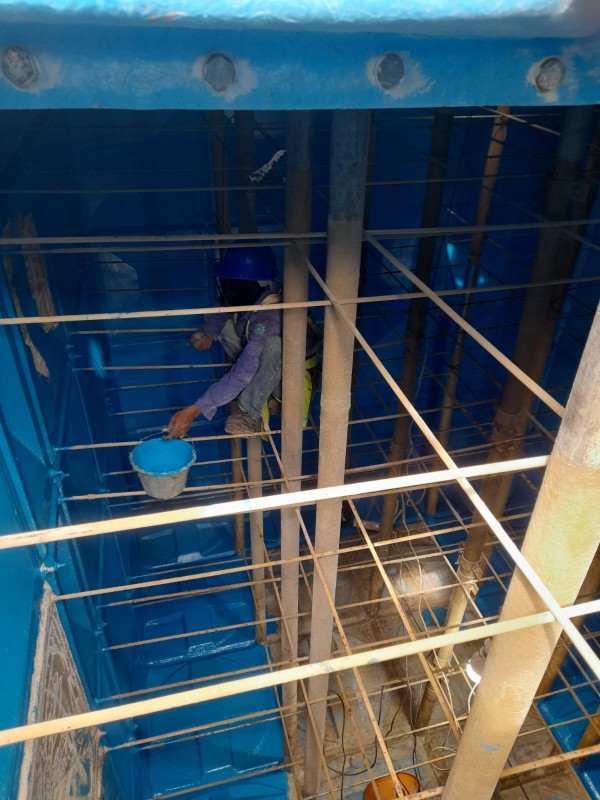 - Waterproofing & Proteksi: Melibatkan coating pada area permukaan bagian dalam dan bawah tangki, sehingga memperpanjang usia pakai tangki dan meningkatkan keamanan operasional.